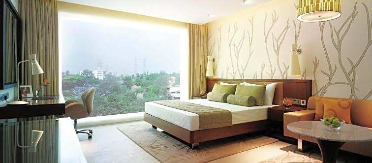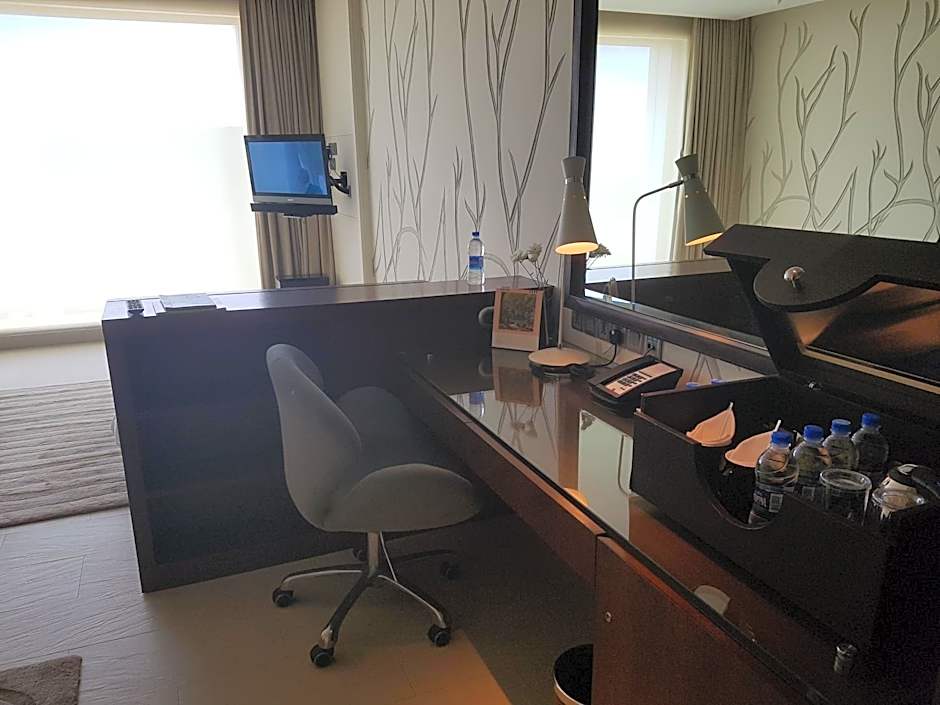 Featuring panoramic city views, spacious suite offers a separate lounge area and a dining table.